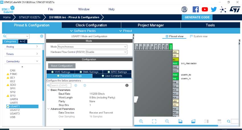 From the schematic diagram, it can be seen that DS18B20 is enabled by PG11 port to open the serial port to print temperature information