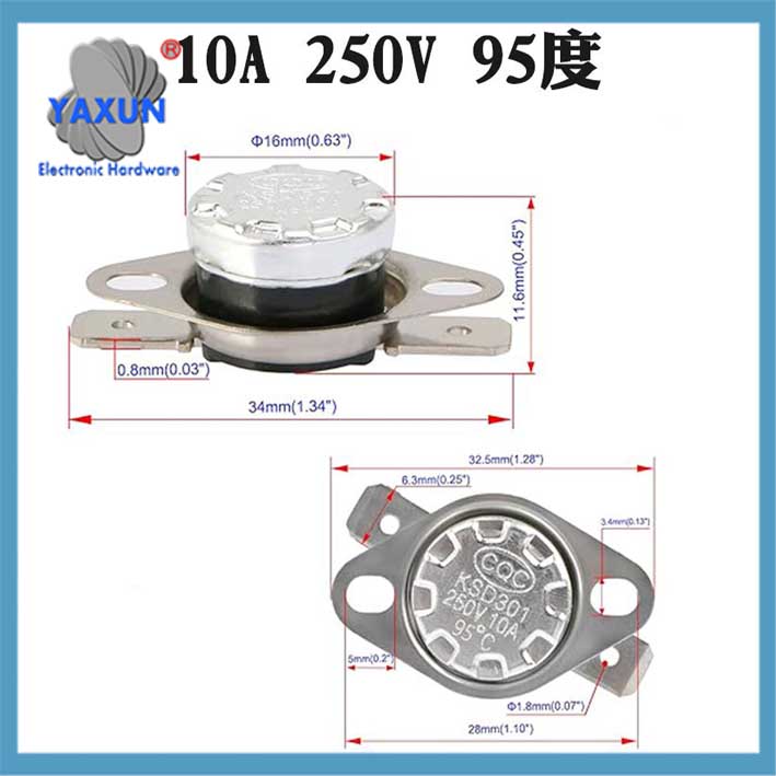 KSD301 is a widely used bimetallic temperature-controlled Limit switch, mainly used for overheat protection or temperature control of electrical equipment. Its main features and information are as follows: