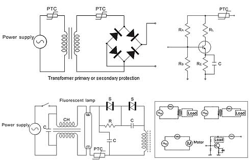 Защита от перегрузки по току Термисторы PTC представляют собой защитные компоненты, которые автоматически защищают от аномальных температур и токов., и широко известны как “самовосстанавливающиеся предохранители” или “10,000-временные предохранители.” Они заменяют традиционные предохранители и широко используются для защиты двигателей от перегрузки по току и перегрева., трансформаторы, импульсные источники питания, электронные схемы, и другие приложения.