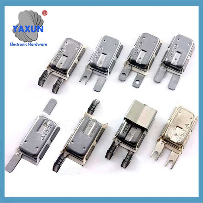 双金属片结构: It is composed of two metal strips with different thermal expansion coefficients. 当温度升高时, 由于膨胀差异,金属条弯曲变形, 触发机械连杆切断电路; 温度下降后自动复位并恢复导通.